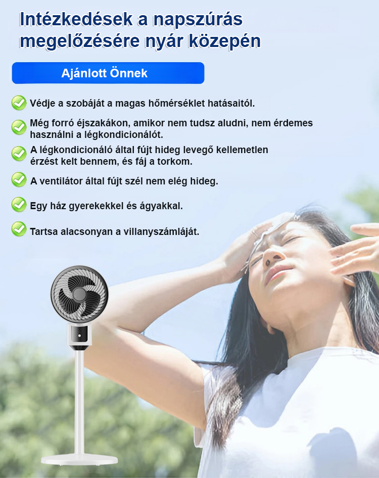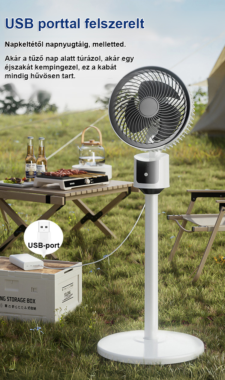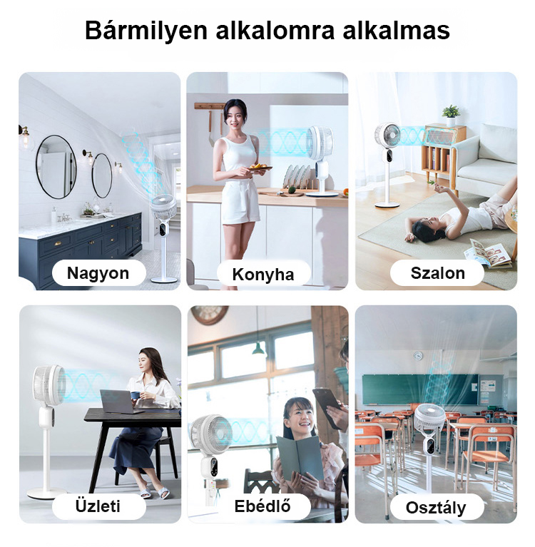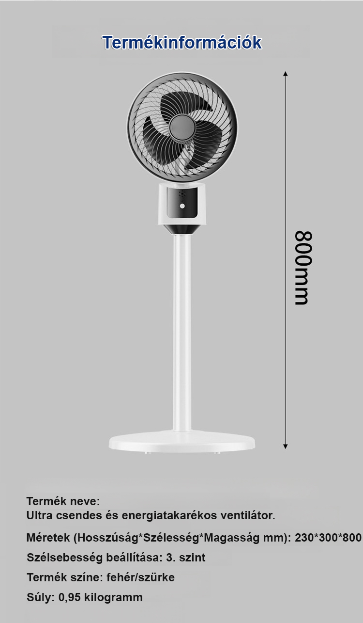 Halk nélküli, energiatakarékos, körkörös forgású álló ventilátor