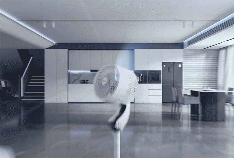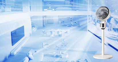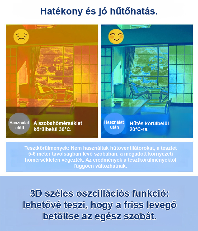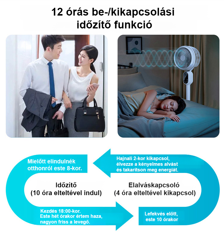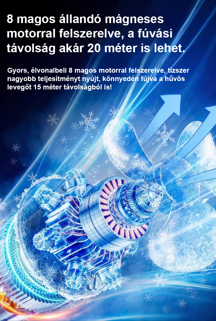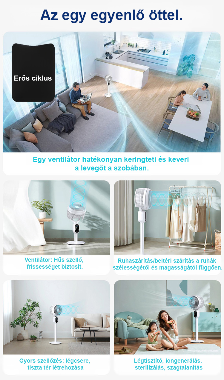 Halk nélküli, energiatakarékos, körkörös forgású álló ventilátor