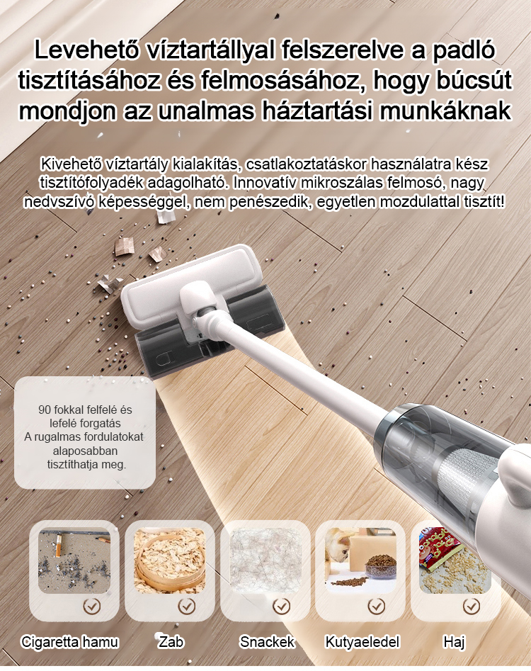 【Vezeték nélküli szívó- és felmosó integráció】Nagy szívóatka eltávolító vákuum felmosógép